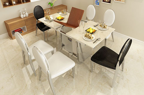 Bàn ghế phòng ăn cao cấp trên thị trường hiện nay có rất nhiều loại vật liệu khác nhau như gỗ, plastic, kim loại, sứ, đá hay pha lê... với ưu, nhược điểm và vẻ đẹp khác nhau. Do đó, khi chọn mua bàn ghế phòng ăn, yếu tố đầu tiên bạn nên xem xét đó là chọn vật liệu bàn ghế cũng như màu sắc phù hợp với phong cách thiết kế, màu sắc gian bếp cũng như phong thủy nhà bếp.